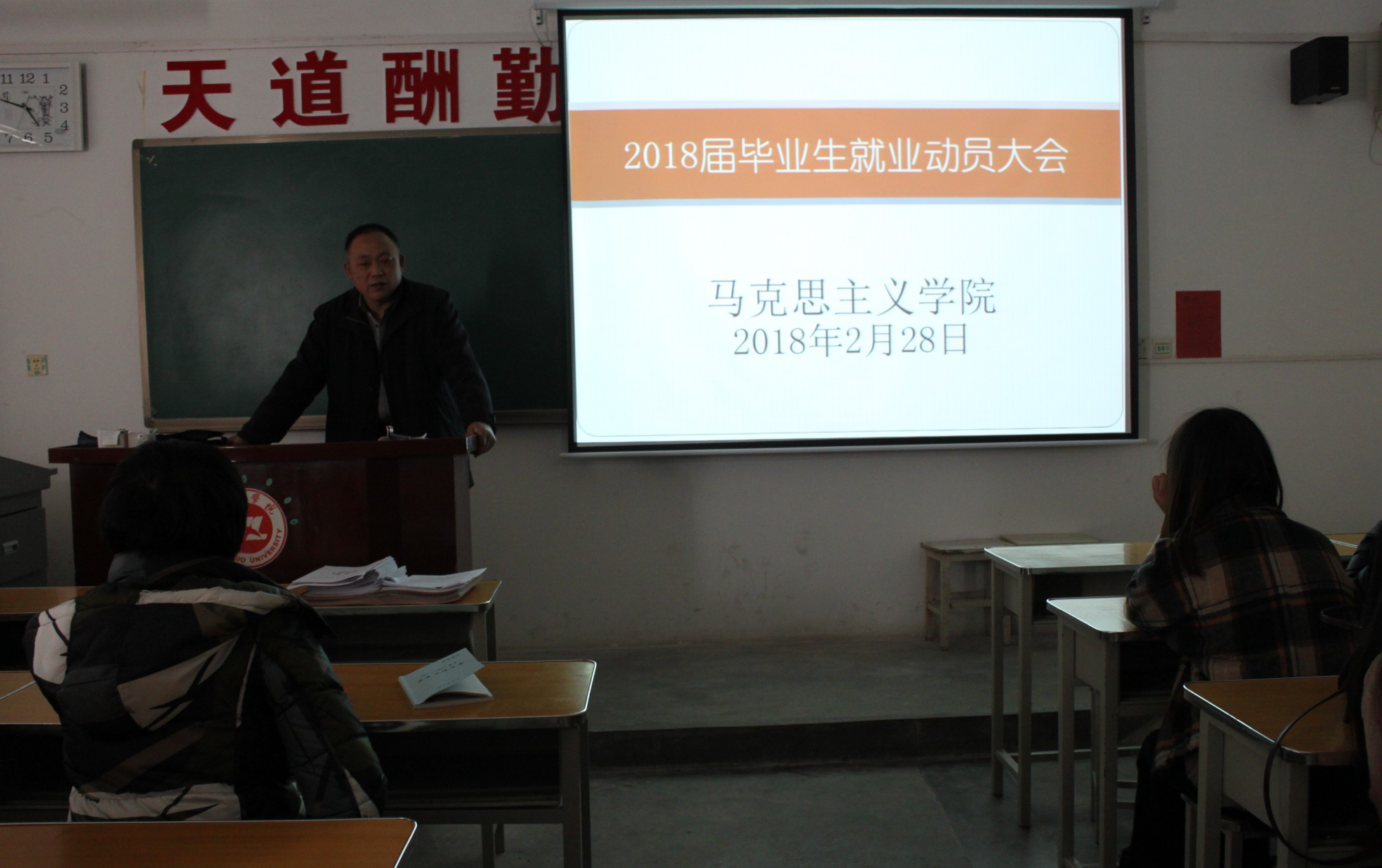 为了更好地调动2018届毕业生就业的积极性、主动性,增强就业紧迫感与自信心,2月28日下午,威廉希尔中国官网在一号教学楼304教室举行了就业动员大会。公司党总支书记张亚强、辅导员李燕燕老师、2018届毕业生参加了本次大会,会议由辅导员李燕燕老师主持。