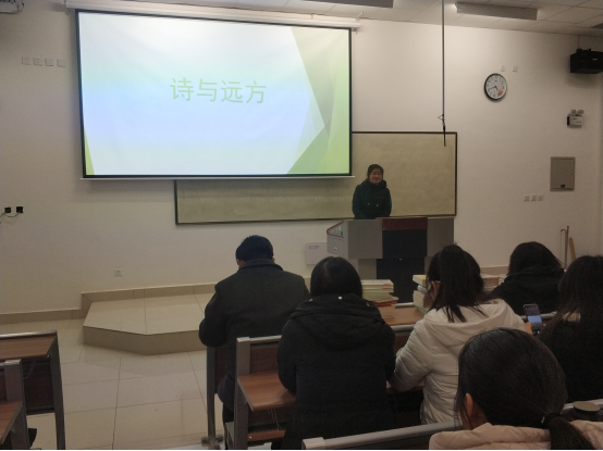 大四支边员工刘光荣用ppt的形式向众人展示了自己在新疆期间的生活,分享了自己的体会与感悟。她就同学们关心的住宿、饮食、支教公司情况、交通费、旅途安全、补贴等各方面问题一一作了解答。