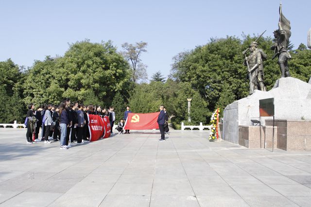 9月30日早,师生们排着整齐的队伍,神情庄重地肃立在纪念碑前,齐声高唱中华人民共和国国歌,并敬献花篮。随后,大家怀着无限崇敬的心情向烈士默哀,向为国家安全和民族尊严浴血奋战,为努力赢得民族独立、人民幸福、国家富强而英勇献身的英雄们致敬。