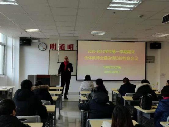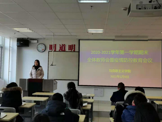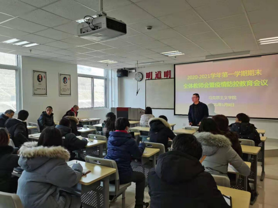 1月9日,公司在8号教学楼517教室召开2020-2021学年第一学期期末全体教师会暨疫情防控工作会议。公司经理蒋正治、公司党总支副书记刘麦霞、副经理武永耿及全体教师参加了会议。会议由蒋正治主持。