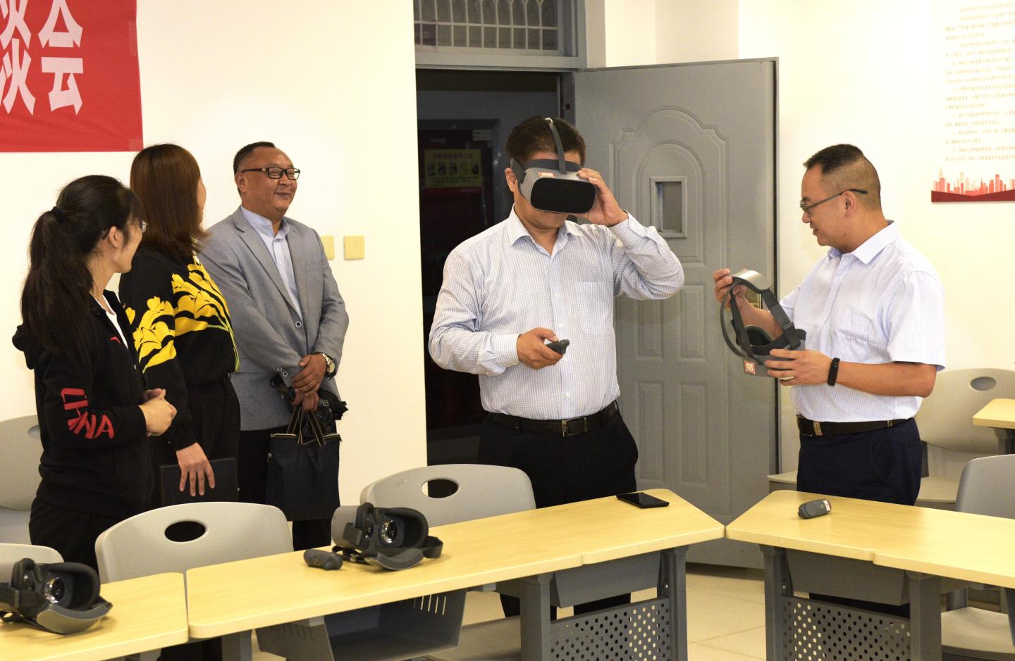 张志昌视察了公司思想政治教育VR实验室、教研室、办公室,了解了公司办公设施等基础情况,并亲切慰问了在岗的教师和辅导员。