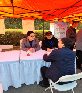 蒋正治等在招聘会现场与前来咨询的求职者展开了深入交流,详细介绍了公司今年的招聘计划及思政课教师相关福利待遇,并专门就博士研究生聘任情况做了说明。