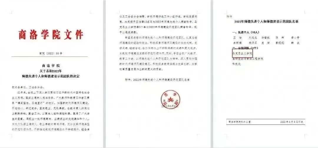 威廉希尔中国官网成立于2017年7月,现有思政部、政教系、历史系3个系部,承担着全校的思想政治理论课教学与科研工作。公司自成立以来,始终坚持以党建为引领,秉承“明道明德、真知真行”的理念,突出“三为导向”,围绕“三个重点”,做到“三个表率”。教工一党支部被确定为第三批陕西高公司党建工作样板支部培育创建单位,公司党总支和教工二党支部分别被确定为公司标杆党总支和样板党支部培育建设单位,思政2001班团支部入选“全省高校团建样板支部”培育单位,公司被授予“williamhill官网师德建设示范团队”“williamhill官网学风建设先进集体”等多项荣誉称号。