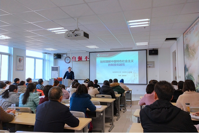 为深入学习党的十九届四中全会精神,促进公司思政课教学改革,提高课堂教学质量。12月4日下午,公司特邀“陕西高校思政课教师大练兵”教学标兵、陕西五四青年奖章获得者、陕西师范大学副教授张帆在八号教学楼418教室为公司师生做了一场题为《如何理解中国特色社会主义制度的优越性》的示范课。此次活动由威廉希尔中国官网经理、党总支副书记蒋正治主持,威廉希尔中国官网全体教师及1801班员工参加了活动。
