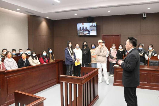 本案件审判长的助理法官,在开庭前给同学们简单介绍了案情。随着审判长敲响法槌,庭审正式开始。庭审中,从法庭调查、法庭质证、法庭辩论、到被上诉人作最后陈述,整个过程气氛严肃、流程规范、秩序井然,同学们全神贯注地倾听思考。最后,审判长宣布闭庭,合议庭将依法合议,择日宣判。