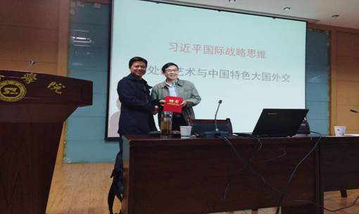 刘教授的讲授深入浅出,既有国际热点问题的援引,也有中国特色大国外交的成就例举,不仅让师生全面了解了习近平总书记的国际战略思维和中国特色大国外交的格局,而且坚定了师生为实现“中国梦”努力工作和学习的信心。