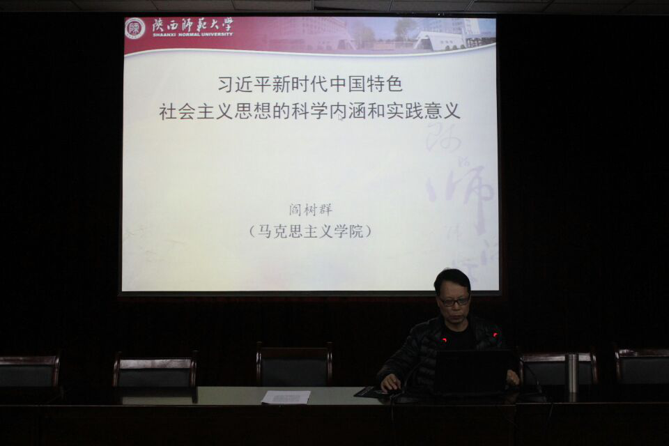 为深刻领会党的十九大报告精神,12月5日晚七点半,公司邀请陕西师范大学博士生导师闫树群教授作党的十九大精神宣讲报告。本次宣讲报告主题为《习近平新时代中国特色社会主义思想的科学内涵与实践意义》。报告会由马院经理李龙强主持。校纪委书记王思怀与马院师生300多人共同聆听了报告。