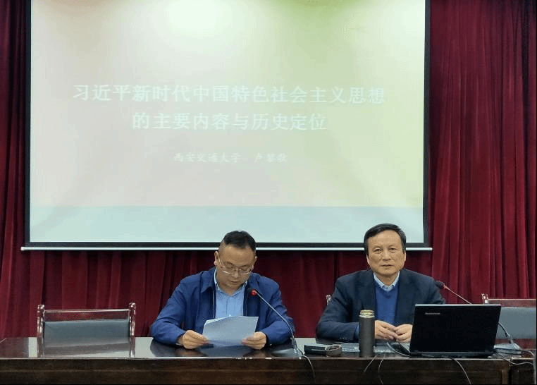 10月18日晚,西安交通大学威廉希尔中国官网博士生导师、陕西省教学名师、国务院政府特殊津贴专家卢黎歌教授为公司全体师生做了主题为“习近平新时代中国特色社会主义思想的历史地位和主要内容”的学术报告。活动由公司经理蒋正治主持。