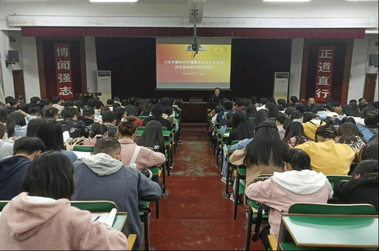 卢黎歌从习近平新时代中国特色社会主义思想形成的时代背景、主要内容与理论品格和历史定位三个方面进行了深入系统的阐述。指出习近平新时代中国特色社会主义思想是在中国特色社会主义进入新时代、科学社会主义迈向新阶段、当今世界经历新变局、我们党面临执政新考验的历史条件下形成和发展起来的;其核心要义充分体现在8个明确,14个坚持中,从理想信念、人民情怀、自觉自信、问题导向、担当精神五个方面彰显出其鲜明的理论品格;卢黎歌强调,要从实现历史性变革的根本指针,中华民族伟大复兴的精神力量,为发展马克思主义做出中国原创性贡献、谱写马克思主义新篇章,为建设美好世界提供中国智慧、中国方案这四个方面把握习近平新时代中国特色社会主义思想的历史定位。报告最后,卢教授希望在座师生要坚定理想信念,提高专业素养,做到马院姓马、在马学马、在马懂马、在马信马、在马言马,并鼓励广大师生增强学术自信心和事业自豪感,不辜负习近平总书记对广大思政课教师的殷切嘱托。