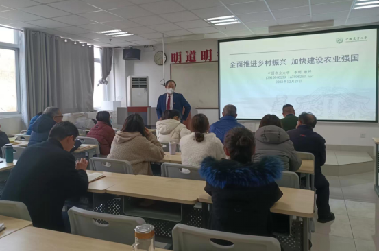 李明首先对2023年12月20日中央农村工作会议的相关内容进行了介绍。他讲到,习近平总书记对“三农”工作作出重要指示强调,推进中国式现代化,必须坚持不懈夯实农业基础,推进乡村全面振兴。他从以新时代中国特色社会主义思想为指导、全面落实粮食安全党政同责、树立大农业观和大食物观、守住耕地这个命根子、强化科技和改革双轮驱动、抓好灾后恢复重建、确保不发生规模性返贫、提升乡村产业发展水平、乡村建设水平、乡村治理水平等八个角度着眼,对推进乡村全面振兴不断取得实质性进展、阶段性成果进行了说明。