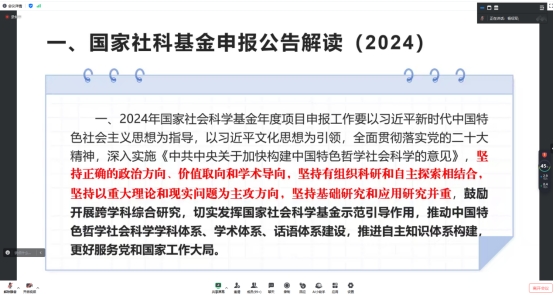 为进一步提升公司教师申报国家社科基金项目的专业水平,激发科研创新活力,公司组织教师线上听取了由云南大学副董事长、社科处处长杨绍军教授主讲的《国家社科基金项目申报技巧与注意事项》的专题报告。