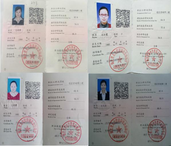 为全面学习贯彻落实党的十九大精神和习近平总书记给“青年红色筑梦之旅”老员工重要回信的精神,进一步落实《国务院办公厅关于深化高等公司创新创业教育改革的实施意见》,公司选派王伟萍、刘玲霞、王晓霞、王贝贝四位老师参加全国创业咨询师二级培训并进行了相关科目的考试,取得了一次性全部通过的好成绩。