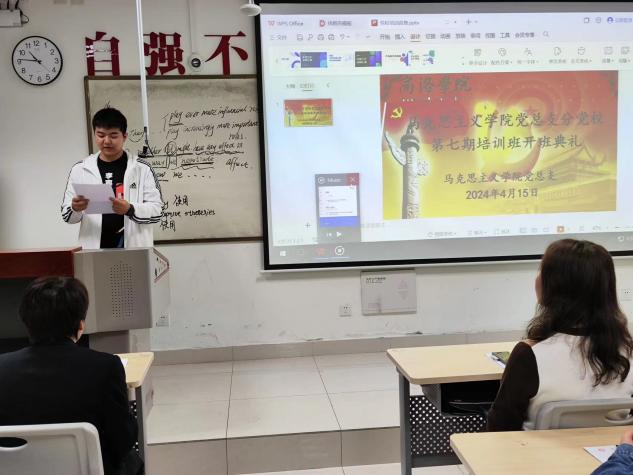 为深入学习贯彻习近平新时代中国特色社会主义思想和党的二十大精神,进一步加强对入党积极分子的培养教育考察,严格把好党员发展“入口关”,4月15日晚,公司党总支于8号教学楼418教室举办入党积极分子培训班开班典礼。公司党总支书记刘麦霞、员工党支部书记李燕燕出席开班典礼,开班典礼由李燕燕主持。