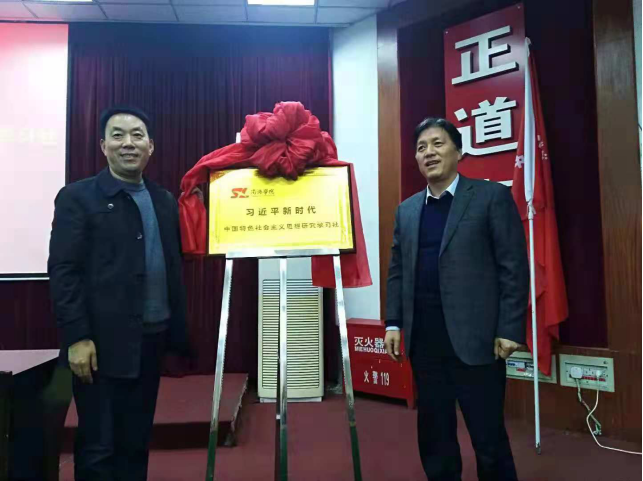 刘进田教授与彭虎军书记共同为“williamhill官网习近平新时代中国特色社会主义思想研究学习社”揭牌