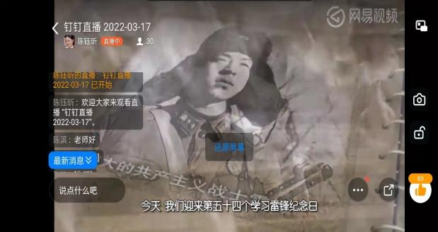 各团支部通过观看雷锋同志相关视频、分享雷锋故事、选读雷锋日记、交流学习感悟等方式,详细了解雷锋同志的生平事迹、人生名言和高尚品格,深刻学习雷锋精神,切身感受雷锋的行为作风。会上,同学们积极在“云”端互动,踊跃连麦分享学习感悟。大家从自身角度出发,并结合生活实际和身边小事表达了自己对雷锋精神的看法。