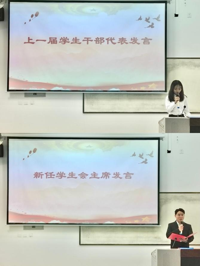 会上,李燕燕宣读了《公司党总支关于表彰2022—2023学年院级优秀团学干部、优秀新闻工作者、优秀志愿者的决定》和《公司党总支关于公布2023-2024学年院级员工干部名单的通知》的文件内容,李燕燕老师为优秀团学干部颁发荣誉证书,刘麦霞为新一任团学干部颁发聘任证书。