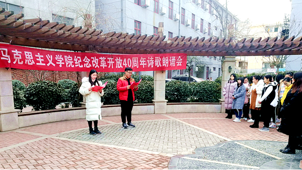 12月18日下午,威廉希尔中国官网在莘子苑举办庆祝改革开放40周年诗歌朗诵会,教师代表及在校员工200余人参加活动。