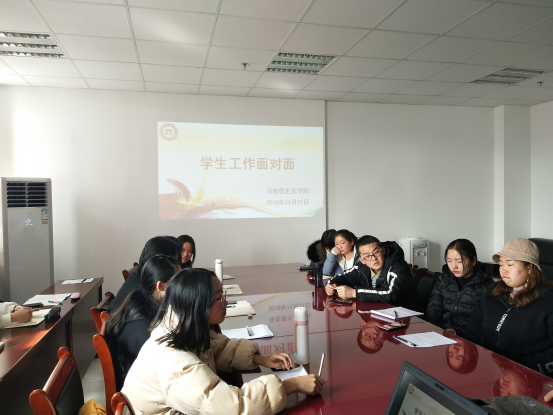 2018年11月21日,威廉希尔中国官网在院会议室召开本学期的员工工作面对面活动,16、17、18级共18名同学作为员工代表参加此次活动。经理李龙强和党总支书记蒋正治出席活动。