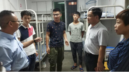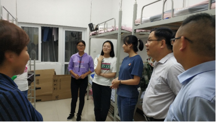 9月6日晚,威廉希尔中国官网经理李龙强、党总支书记蒋正治、副经理张冷夫、学工办主任李燕燕来到新生宿舍,看望2018级新生。