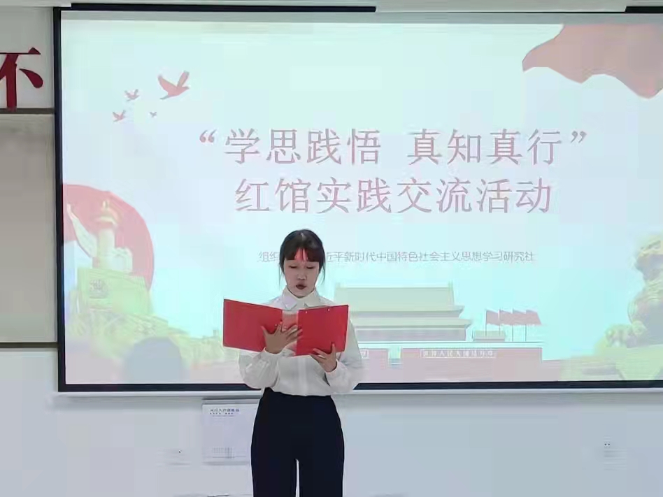 为深入学习十九届六中全会精神,扎实推进党史学习教育,12月9日晚,公司习近平新时代中国特色社会主义思想学习研究社在8号教学楼418教室开展“学思践悟 真知真行”红馆实践交流活动。公司党总支副书记刘麦霞,教师王伟萍、刘健、李娜娜、高珊珊、杨茜、王然出席此次活动并作交流指导,习研社成员及2021级部分员工参加。活动由思政2001班刘璇主持。