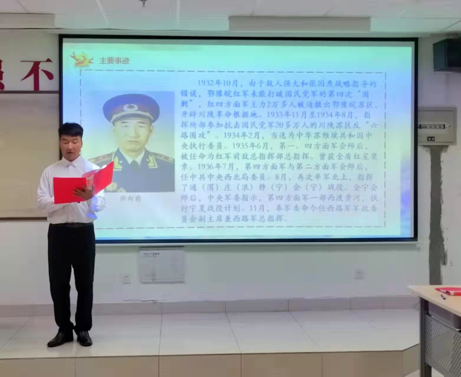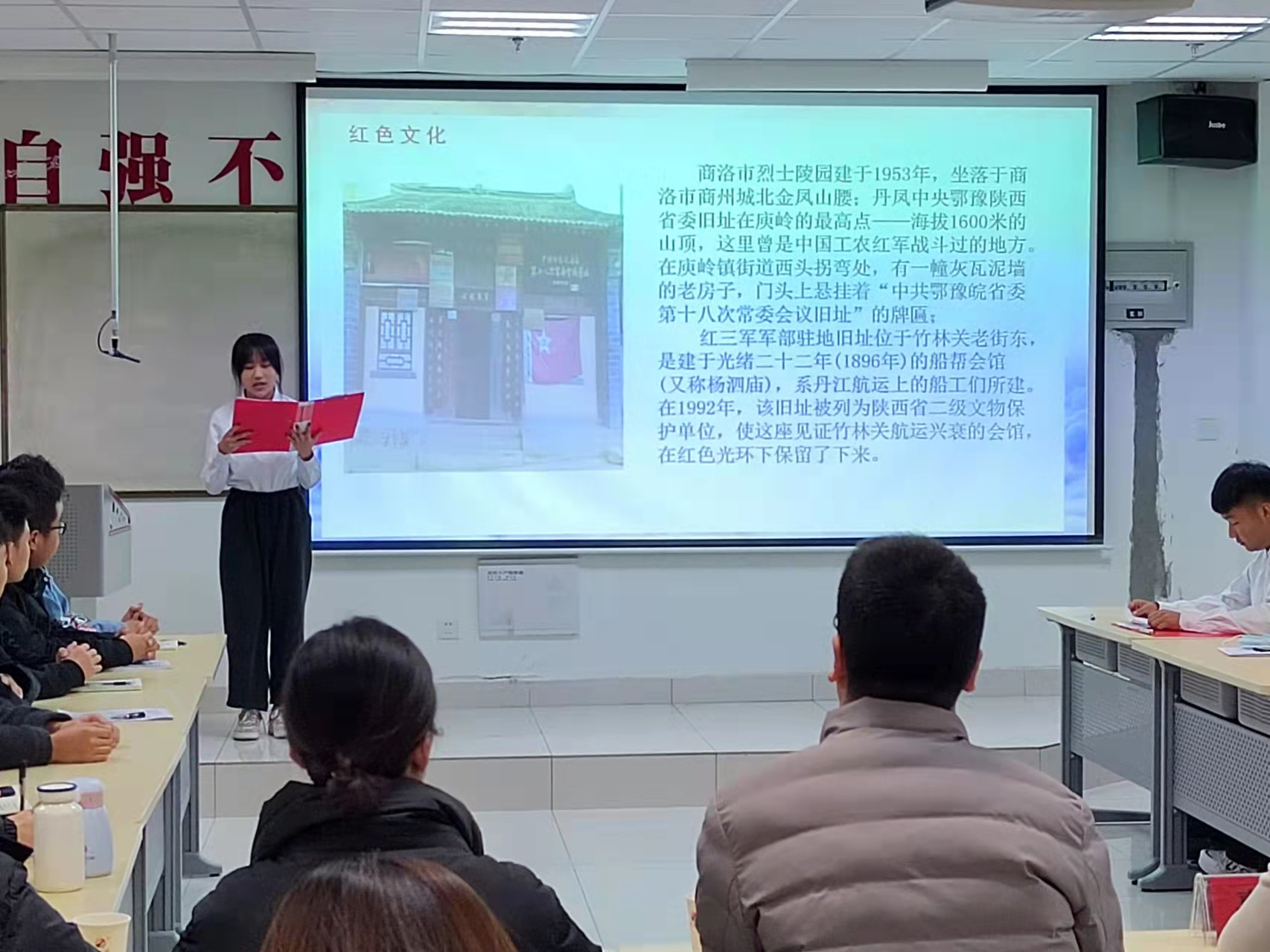 活动中,公司习研社成员郑思佳同学介绍了商洛红色文化的深厚历史和资料馆建立的重要意义,具体阐述了对鄂豫陕革命根据地建立的理解。曹小龙同学向大家精彩讲述了革命英雄徐向前的生平事迹,并呼吁大家深入学习党史,同时做到尊重历史、以史为鉴、展望未来。同学们积极交流学习心得、分享学习收获,各位老师对大家的学习成果予以充分的肯定,并提出了宝贵的指导建议。