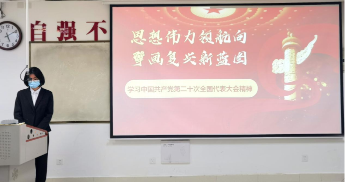 宣讲会上,宣讲员李静和郑思佳分别从“党的二十大的主题”“党的二十大的主要成果”“过去5年的工作和新时代10年的伟大变革”“马克思主义中国化时代化”“中国式现代化”“全面建设社会主义现代化国家的目标任务”等五个方面,围绕以“中国式现代化全面推进中华民族伟大复兴”展开生动阐述和介绍,并通过互动问答、观看视频等形式引导员工充分领会党的二十大主题,领会过去五年和未来十年的工作变革,体会党在过去百年奋斗历程中总结的经验和教训。活动结束后,同学们积极讨论,纷纷表示要以党的二十大精神为指引,学以致用、用以促学、学用相长,立志做有理想、敢担当、能吃苦、肯奋斗的新时代好青年。
