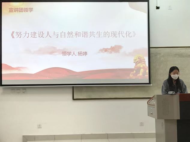 读书会上,同学们观看了习近平总书记关于人与自然和谐共生讲话的视频,深刻领悟习近平生态文明思想所蕴含的人民情怀、文化情怀、生态情怀、民族情怀和天下情怀。宣讲员杨婷带领同学们学习了《习近平谈治国理政》第四卷中关于“努力建设人与自然和谐共生的现代化”的节选内容,进一步深化同学们对党的二十大精神的理解和把握,深入了解习近平生态文明思想的科学内涵。