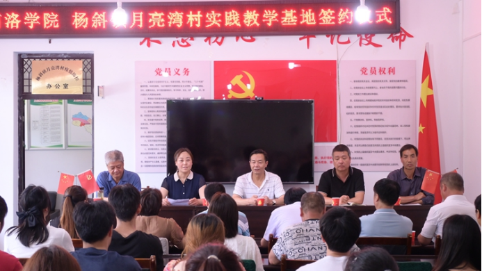 7月14日下午,威廉希尔中国官网师生赴商州区杨斜镇月亮湾村开展校地共建教学实践基地签约活动。公司党总支书记刘麦霞、williamhill官网商洛革命老区暨红色文化研究中心主任杨增强教授,杨斜镇党委副书记刘飞、月亮湾村党支部书记张邦学,商州革命老区建设促进会荣誉会长杨忠厚、会长张帮强出席座谈会。
