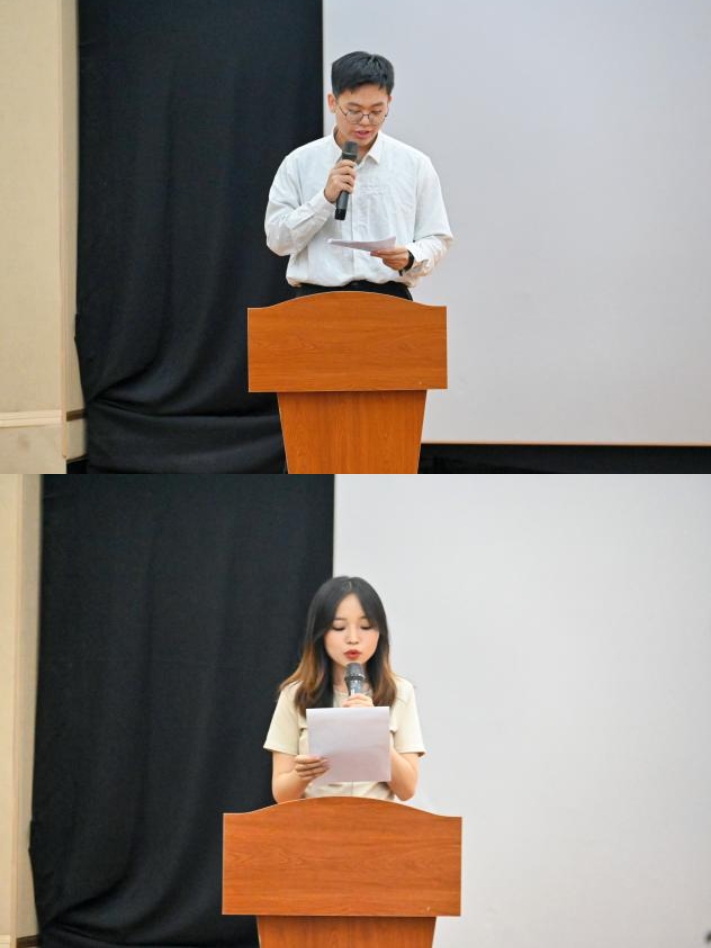王雅杰和李宇航分别作为毕业生代表和在校生代表发言。王雅杰代表毕业生向培养自己的母校和老师表示感谢,并表示会牢记“博闻强志,正道直行”的校训,用实际行动报效祖国,为母校争光。李宇航代表在校生对于即将毕业的学长学姐献上真诚的祝福,祝贺他们圆满完成学业,踏上人生新征途,祝福他们在未来的日子乘风破浪,直挂云帆。