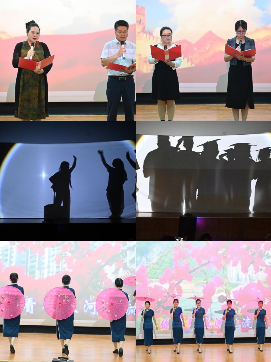 欢送晚会上,老师和同学们同台表演,为大家带了一场精神盛宴。热情洋溢的舞蹈《Thirsty》一开场就点燃了现场的气氛,舞者们用优美的舞姿诠释着青春的活力与激情;由公司教师杨增强教授创作、青年教师朗诵的诗歌《神奇的凤凰》让在场师生感受到了文化的魅力和力量;光影剧《我的大学》带领大家回顾了校园生活的点滴,唤起了无数人心中美好的回忆和感慨;女教师们的旗袍秀《花舞人间》展现了东方女性的独特韵味和魅力,将现场气氛推向了高潮;师生联袂表演的歌曲串烧燃爆全场,传递了青春的热情和希望;最后,一场充满民族风情的藏族舞和一首充满希望的合唱《明天会更好》为颁奖典礼和欢送会画上了圆满的句号。
