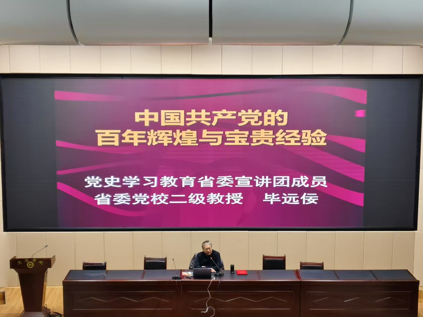 聘任仪式结束后,毕远佞为威廉希尔中国官网师生作了题为《中国共产党的百年辉煌和宝贵经验》的主题报告。