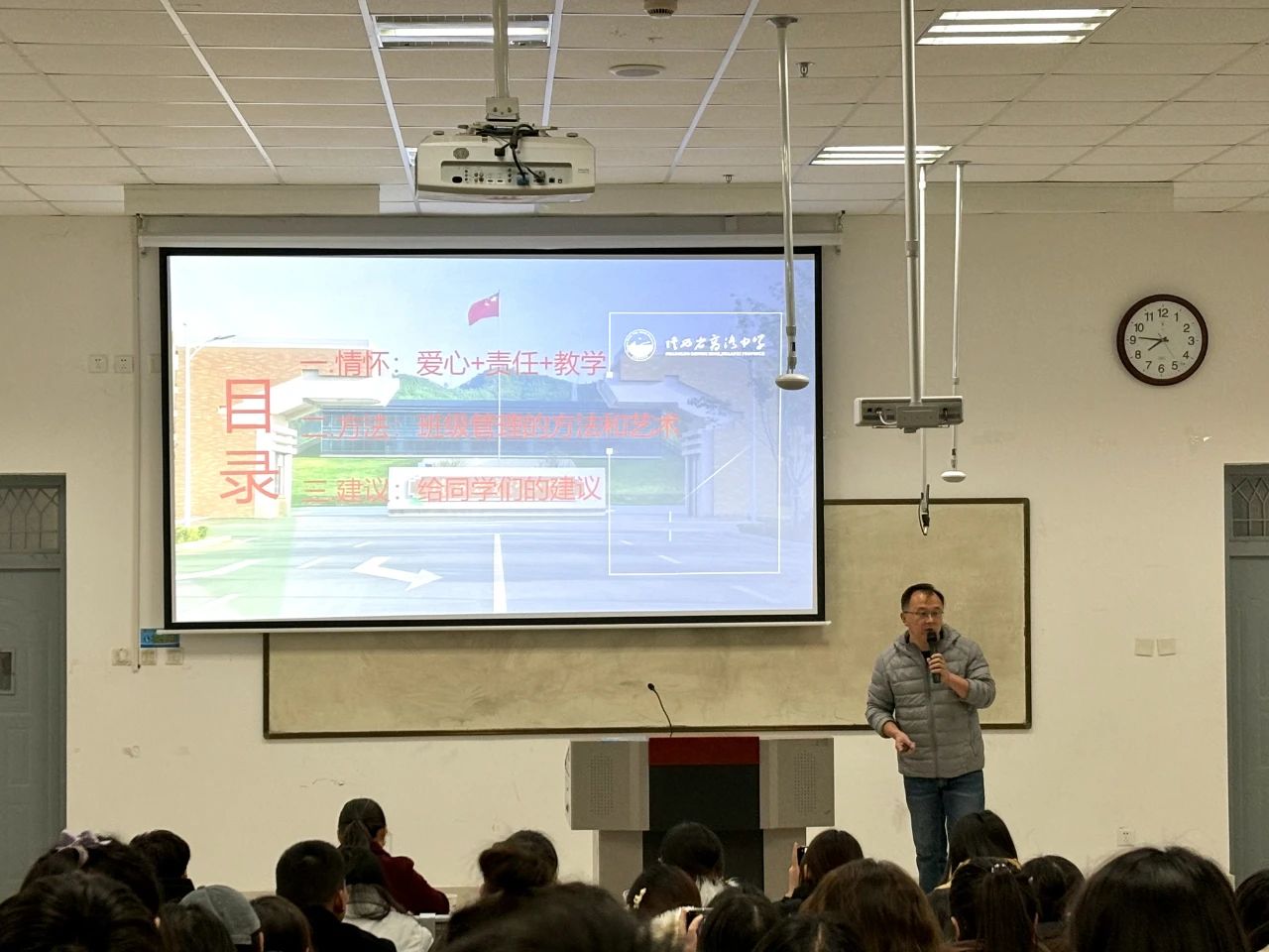 为提升师范生的综合素质,积累实践经验。11月28日晚,公司邀请了陕西省商洛中学阮涛老师在8号教学楼多媒体22教室做报告,公司经理蒋正治出席报告会,活动由政教系主任李世芬主持。